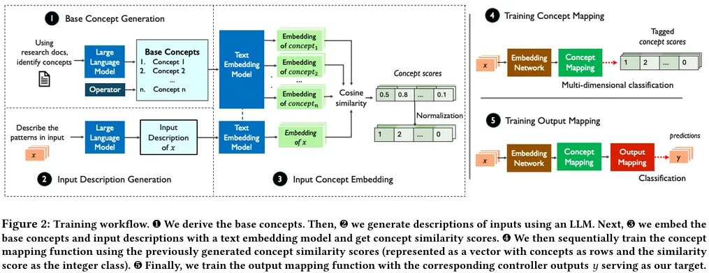 The authors propose Agua, the first concept-based explainer for learning-enabled systems. Unlike traditional feature-level explainers, Agua explains decisions in terms of high-level concepts (e.g., “volatile network conditions” or “rapidly depleting buffer”) that align with human reasoning and operator intuition. Agua achieves this by constructing a surrogate model with two mappings: from controller embeddings to a concept space, and from concepts back to controller outputs. To generate concepts, Agua combines domain knowledge, empirical analysis, and large language models (LLMs). This design enables Agua to reveal the key concepts driving a controller’s decisions while remaining robust to noisy data and LLM variability.