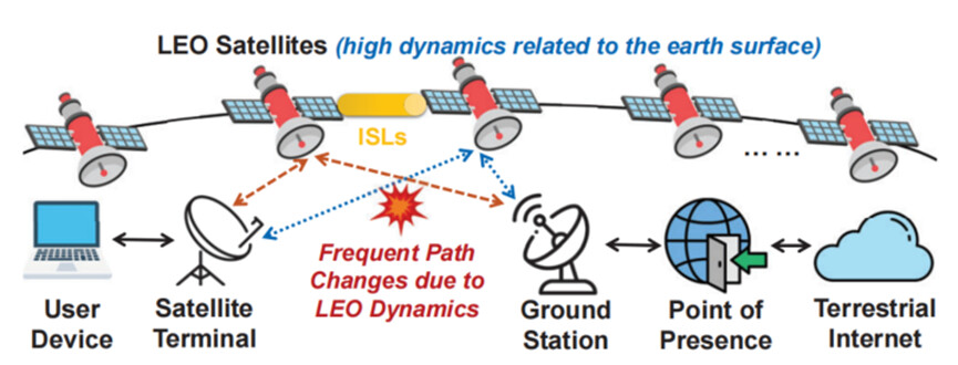 In recent years, low Earth Orbit (LEO) satellite networks (such as Starlink, OneWeb, etc.) have developed rapidly, achieving global broadband coverage and low-latency Internet access through the deployment of large-scale constellations. The traffic it carries continues to grow (for example, Starlink has connected over 5 million users in nearly 100 countries as of January 2025). However, the high-speed movement of LEO satellites relative to the Earth’s surface (approximately 7.8km/s) leads to dynamic changes in network infrastructure, causing frequent and sharp fluctuations in link capacity, latency, and packet loss rate (for instance, capacity can fluctuate between 10 and 70Mbps within tens of seconds, and RTT and the minimum RTT continue to change) The random packet loss rate within the 1-second window reaches 0.5% to 6%. However, the core assumptions of the existing end-to-end congestion control algorithms (CCAs) fail in LEO networks: loss-based algorithms (such as Cubic) cannot distinguish between packet loss caused by dynamics and congestion packet loss, are prone to misjudgment and limit throughput; Delay-based algorithms (such as Copa) overestimate queuing delay due to sharp fluctuations in RTT, resulting in performance degradation. Model-based algorithms (such as BBRv3) rely on the maximum bandwidth and minimum RTT estimation bottlenecks within the historical window, but are difficult to adapt to the rapid changes of LEO networks. Learning-based algorithms (such as VIVACE) are difficult to converge in a timely manner in dynamic environments. These problems make the existing CCAs either have limited throughput and fail to fully utilize the links in LEO networks, or overly occupy the links and cause high latency. There is an urgent need to design new congestion control schemes for the dynamic characteristics of LEO.